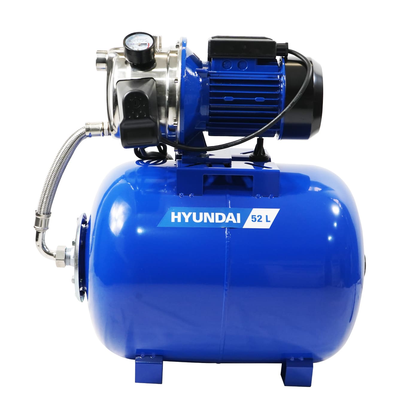 Bomba de agua eléctrica Profesional con potencia de 1 hp y tanque hidroneumático de 52 Litros marca HYUNDAI.