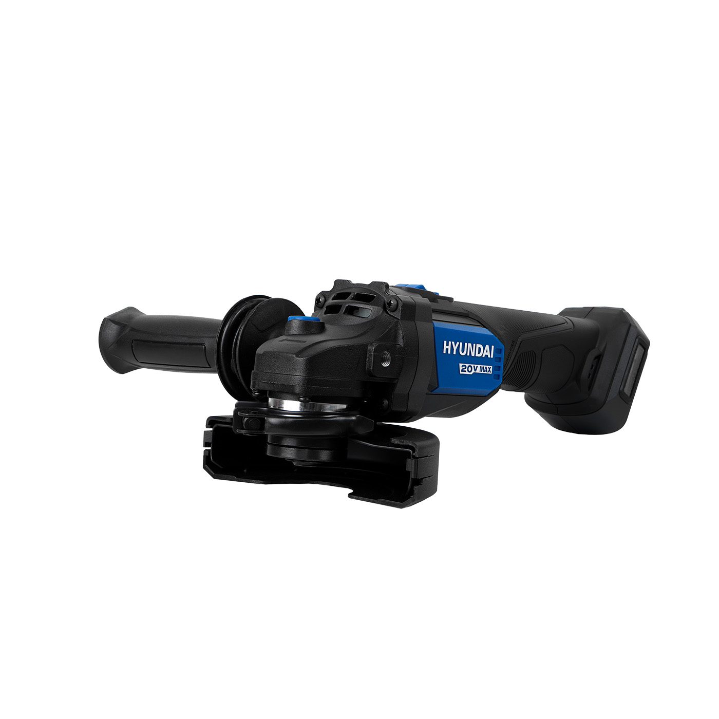 NUEVA Esmeriladora angular brushless de 20v con interruptor deslizante de encendido/apagado, ajuste rápido de la protección y mango ajustable marca HYUNDAI.