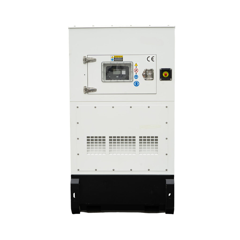 Con botón de paro de emergencia de fácil acceso para detenerlo en caso de riesgo. Cabina acústica de fácil acceso para mantenimiento y monitoreo (menor ruido y menor vibración). Depósito de combustible dentro de la cabina.