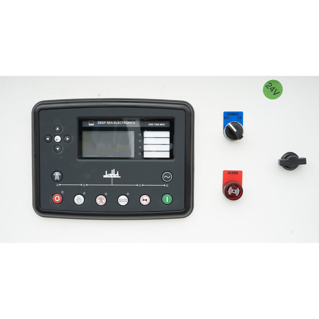 PANEL CONTROLADOR DEEP SEA 7420. Diseñado para permitir al operador arrancar y parar el generador, y si es necesario transferir la carga al generador de forma manual (mediante pulsadores montados en el salpicadero) o automáticamente. Además, arranca y detiene automáticamente el generador en función del estado de la red eléctrica. También supervisa el motor, indicando el estado operativo y las condiciones de fallo la pantalla LCD.