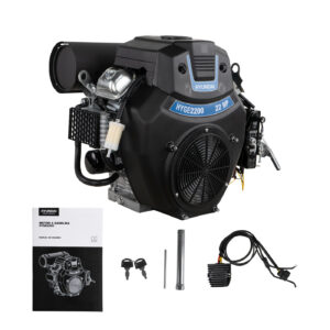 Diámetro de cigüeñal de 1″. Cuñero 1/4″. Incluye sensor de aceite. Motor bi-cilíndrico.