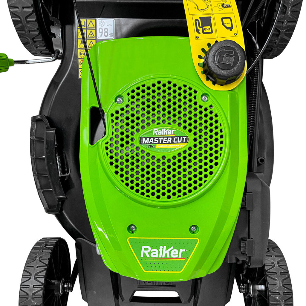 NUEVA Podadora de pasto AUTOPROPULSADA con bolsa recolectora de 65 litros, motor de gasolina a 4 tiempos con potencia de 6.2 hp, 20 pulgadas de corte y elevadores de 7 posiciones marca RAIKER.