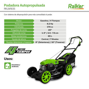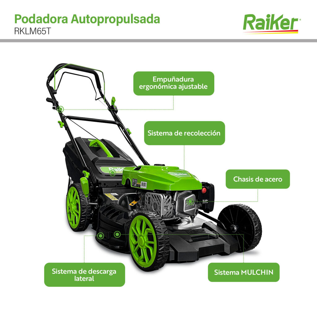 Podadora Raiker 6.2 Hp Con Bolsa 20 Pulgadas Autopropulsada – Rklm65t